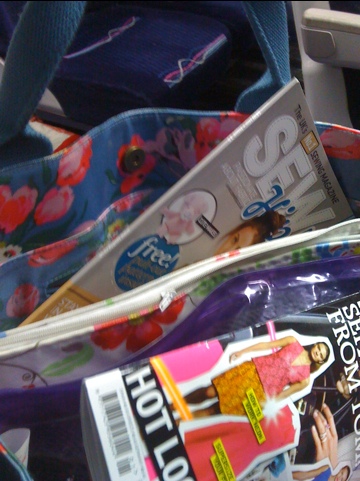 See the magazines? My two vices, Grazia and Sew Hip. Love Grazia even tho I know I shouldn’t – how many facets can they find to the Tom/Katie saga I wonder? Love SH even tho I know I’ll never make anything from it. I’m not very good at following patterns – I go off piste very easily whether intentionally or not.