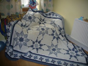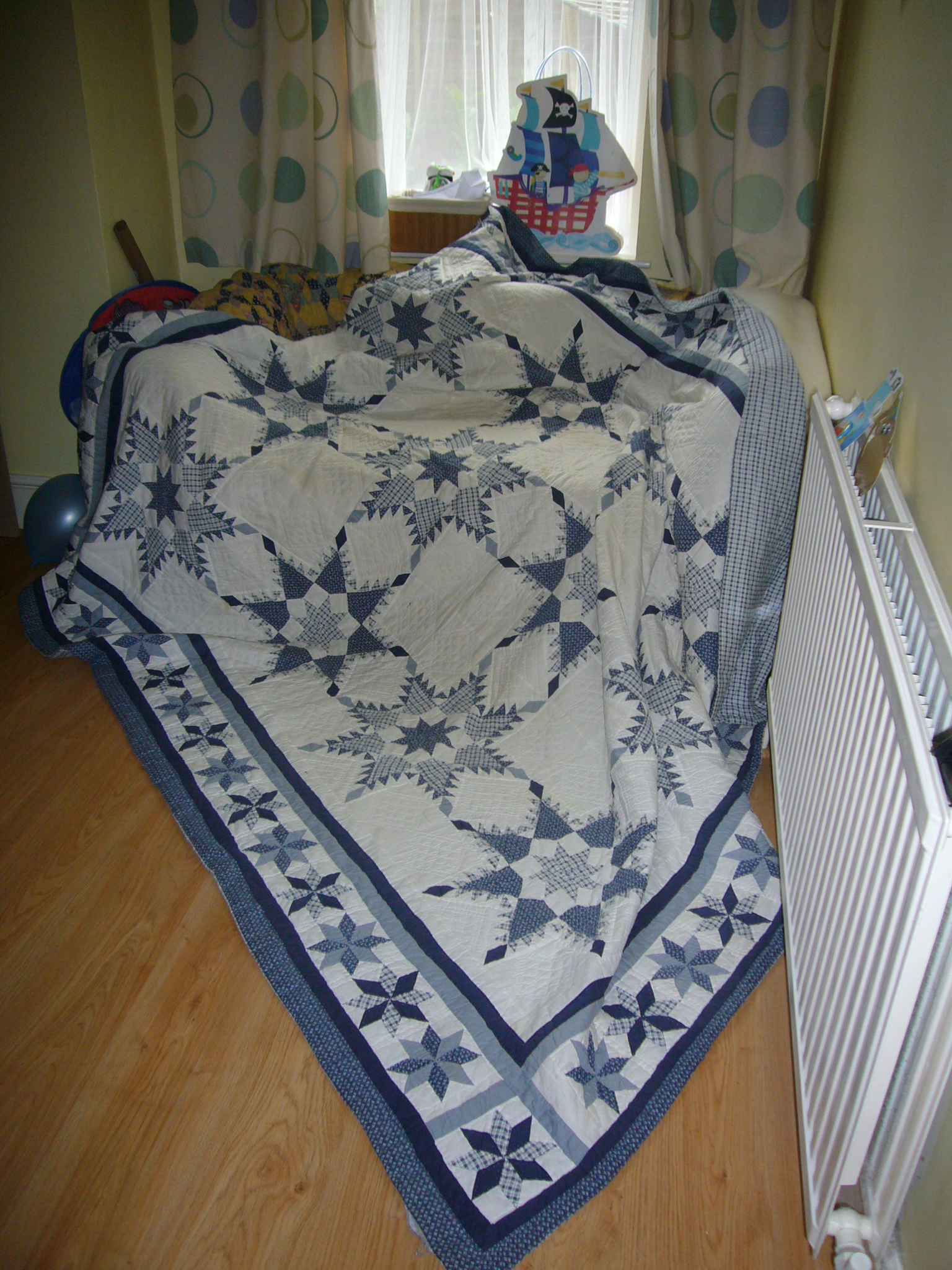as promised…here’s my Texan beauty…sawtooth star, all hand pieced and quilted…I love it…I hope you do too.