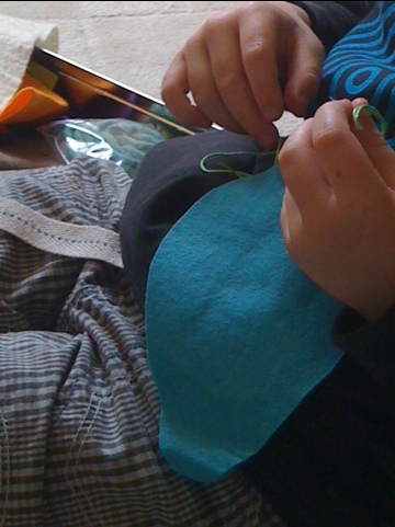 What a lovely way to which away the time when Little One is sleeping… Elder is stitching an Easter egg for our garland. Proud? Me? You bet I am.