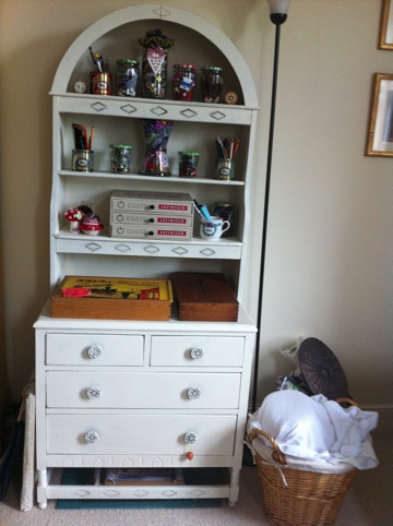 I got the dresser from eBay and the rest is repurposed from elsewhere in the house or my stash. The big dresser drawers are full of yarn!!!!