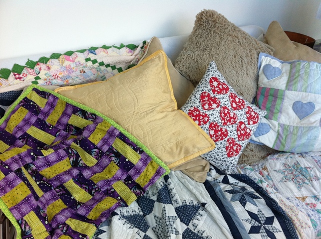 This is just a taste of the quilted stuff I have around the place. eBay, Etsy, auctions…all good for antique and vintage. But making your own is good for the soul. And I like new things so an online interactive workshop or course is perfect. Enter quilt u