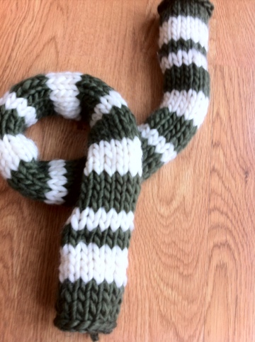 Look! I finished something! A simple school scarf for Elder in his school colours.
