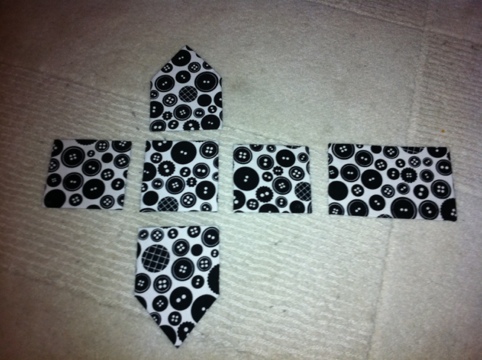 Use spray glue to stick lining to each card template and sellotape to secure the ‘hem’