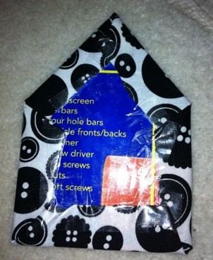 Decide how the house will fasten together. I used buttons on each corner with thread loops to do up each side. The roof sits closed by virtue of gravity. You could use velcro or magnetic fasteners if you are feeling adventurous.