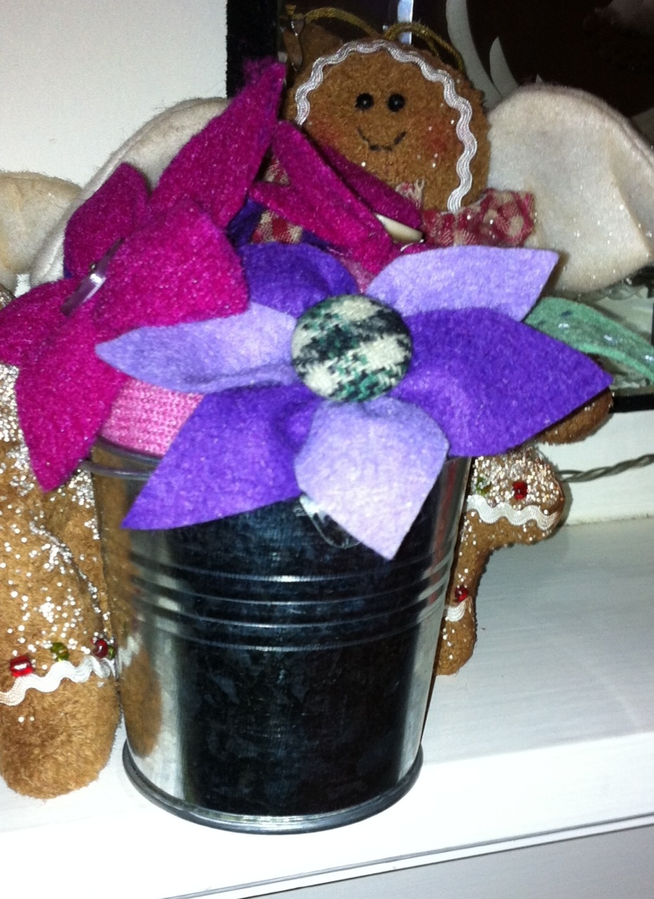 Gah! Am having a crafting crisis of faith. Is this bouquet bucket of felty flowers a rubbish teacher’s present or is it quirky/cool?? Can’t decide. Help!! Can’t diss the teacher!