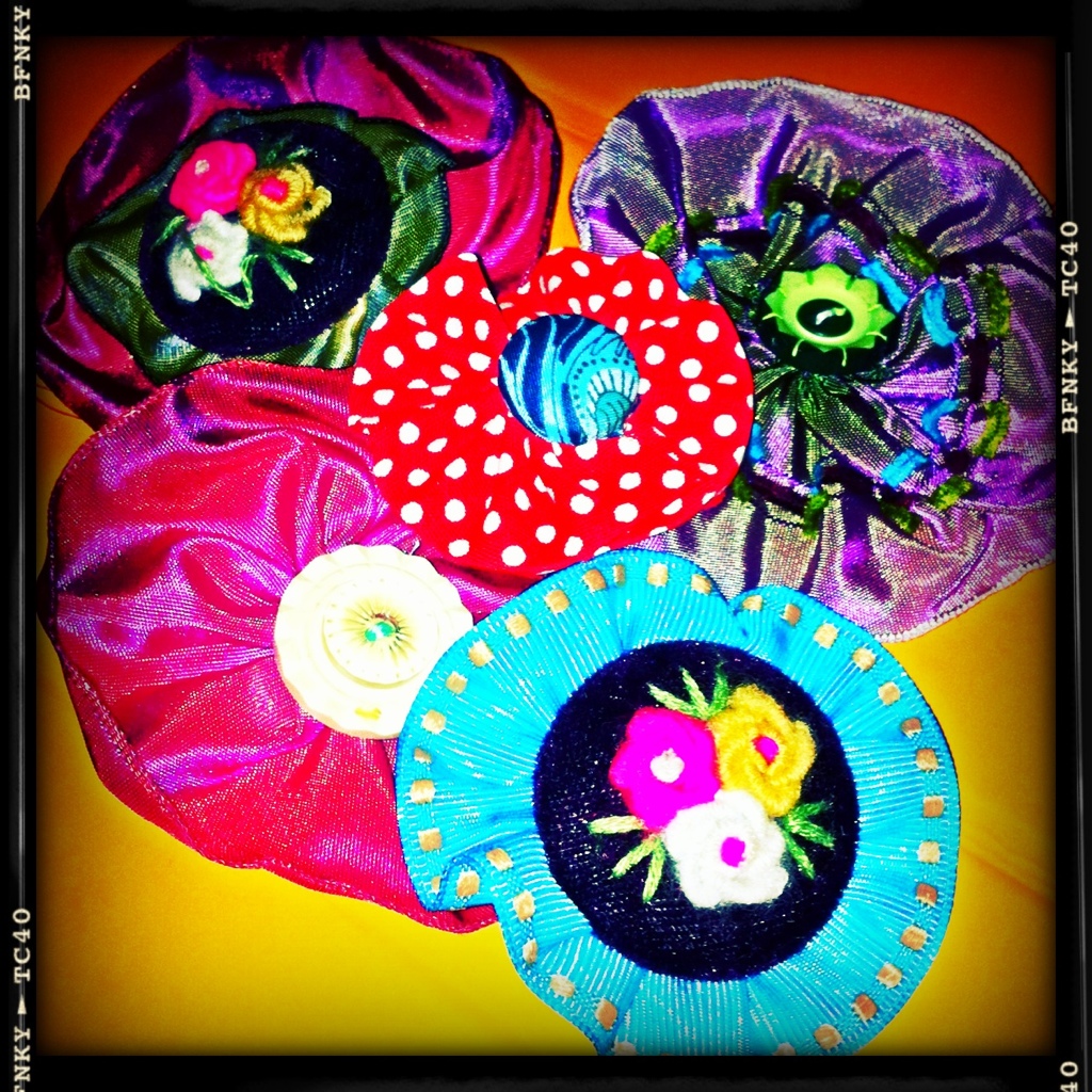 […] they’re vintage 1940′s apparantly – but to make a yoyo is so easy even I do it look . You cut a circle of fabric, do a running stitch around the circumference and then pull tight, […]