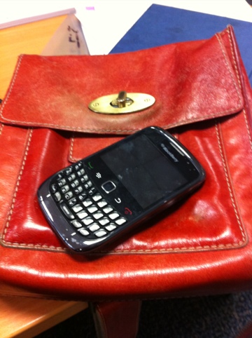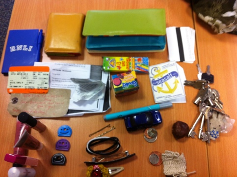 This is the contents of my handbag. This is my handbag, with BB next to it for perspective purposes. Small, isn’t it? Tardis-like isn’t it? Even the Tardis deserves a tidy.