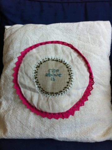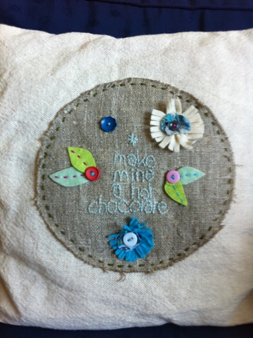 Do you remember the make that I forgot to photograph? Well, here it is… A double sided cushion for a very good friend.