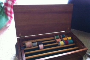 It’s made from yew and is an eBay bargain. I’ve been a little busy thereon lately. Expect more on that in a few days…hurry up postie. In the meantime, the reason for the purchase is the cunning thread rack within the box. Look…