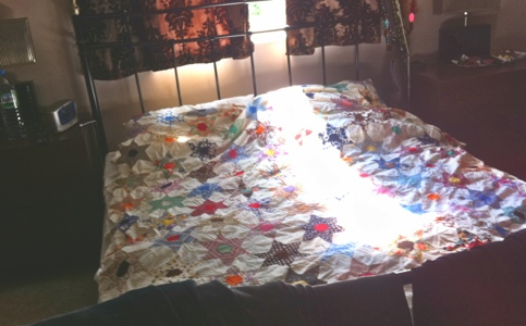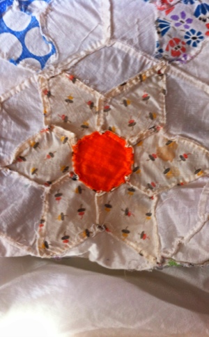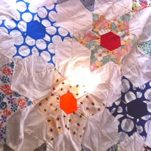 You know I like a nice quilt. Well the postman has been busy recently (as have HMRC collecting extra duty grrrr) as I have scored a couple of beauties recently. I’ll post the second one later but here’s number one. A 1930’s feed sack top with lovely stars all hand stitched. I’m thinking simple quilting with a spotty backing fabric? My boys and OH each have quilts to snuggle under. I think this will be mine. Eventually.