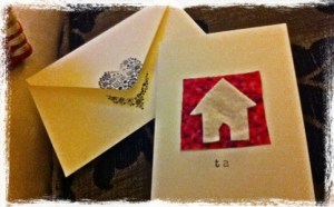 And back home for sleepy, shrieky baths and bed. And a quick THANKYOU card knocked up using fabric, quilt wadding and a card blank.