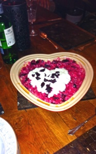 Anyway, it was a roaring success I’m relieved to report. We invited a mix of folk who didn’t all know each other and that thankfully worked out well. So well I’ve had the grand total of 3 hours sleep! Yawn! And I cooked!!! Now, I dont normally do cooking but I did the starter and pudding and my friend, The Child Whisperer, made the main. We had: