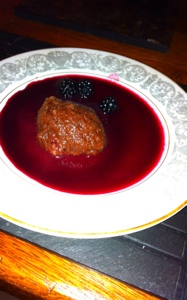 Chocolate sorbet with blackberry sauce – I’d do this in little dishes next time though.