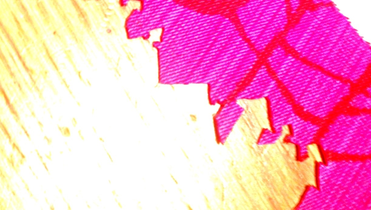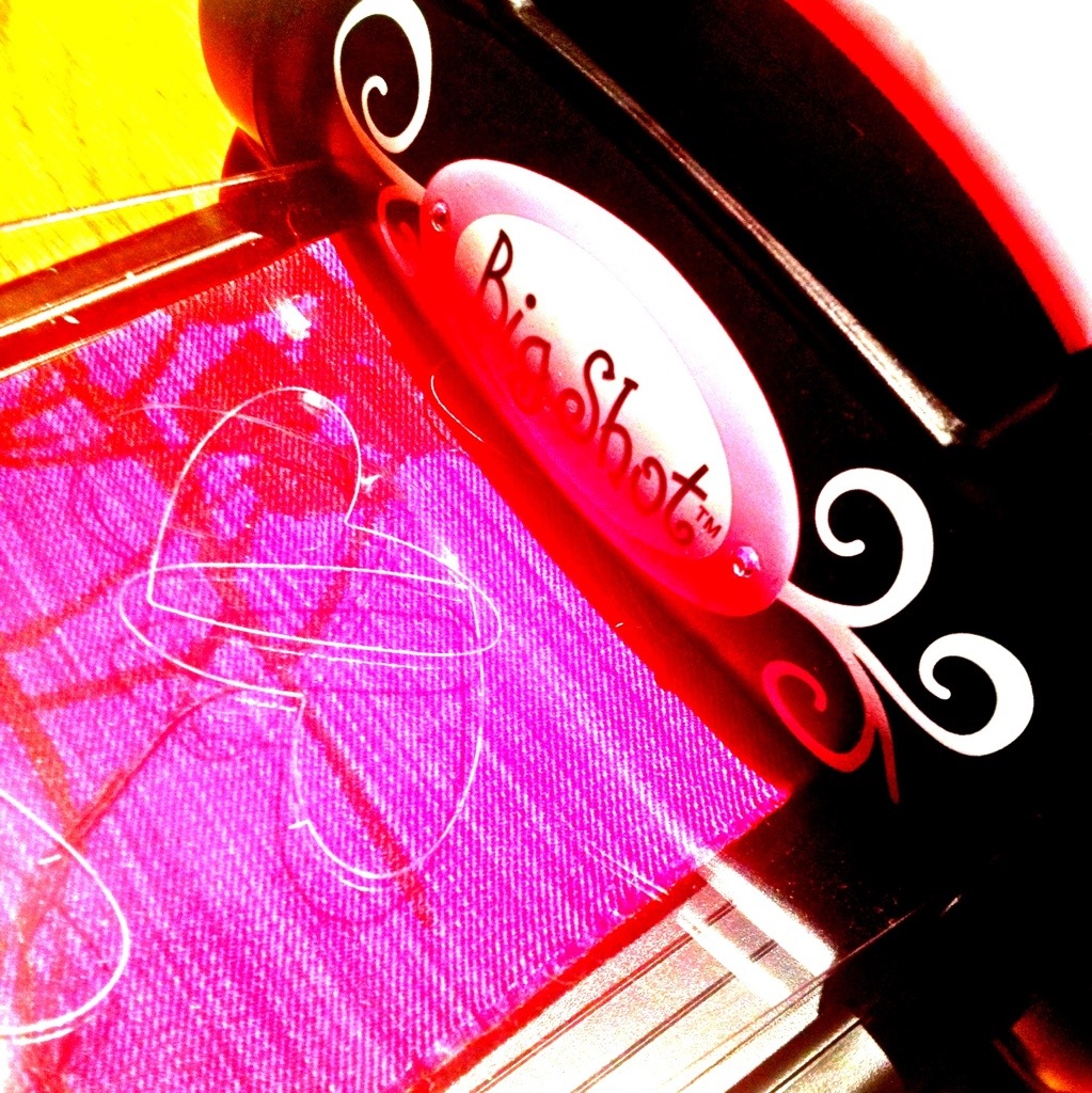 When done, it looked better but boring. Time to wheel out my present to myself from my previous employers, a Sissix Big Shot die cutter. These are normally used for cutting paper but if you add stabiliser, fabric works too. So, I ironed bondaweb to some pink and red fabric I’ve just got.