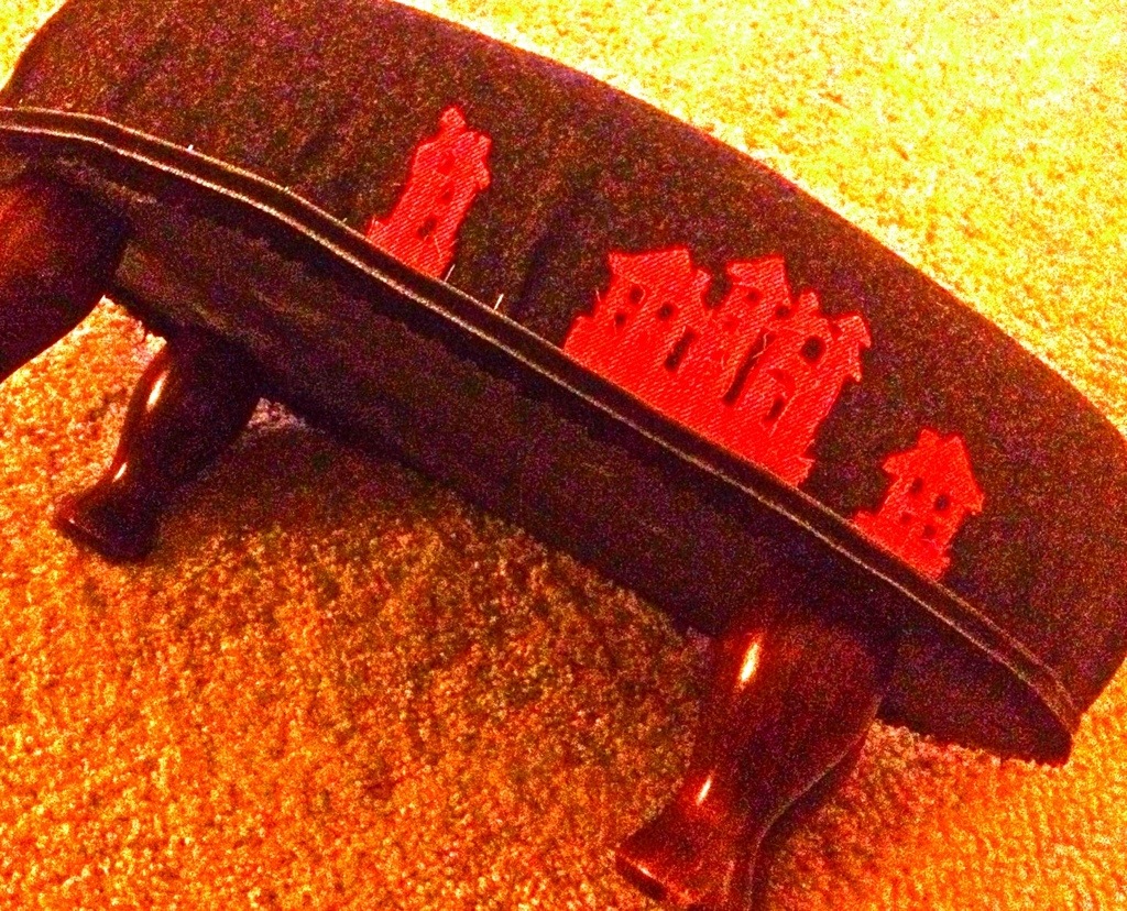 First up, is a little footstool I revamped. As you can see from the first picture it was very, ahem, traditional. And pink. And fringed. And rather unloved.