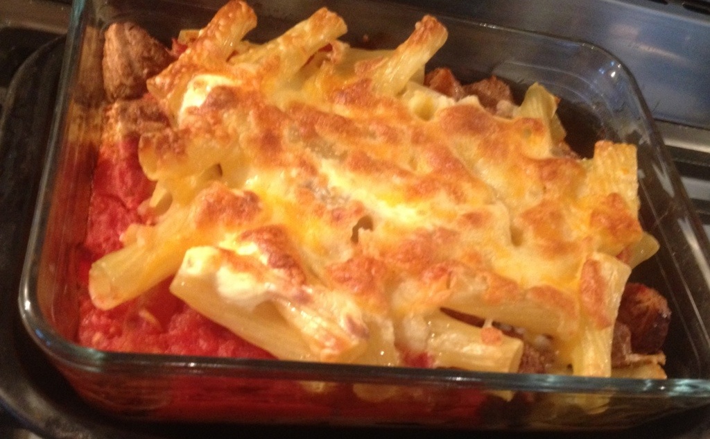 The above concoction is a case in point. It looks quite professional I think. In fact, it’s a can of tomatoes, some vegetarian sausages and a bit of pasta. All mixed up with the magic cheese! Yes I love it.
