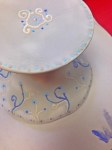 Then on to a birthday party with Elder at a Paint your own Pottery place I have always wanted to go to but again had no time. I had a go too, I had a blast. This is a cake stand base. I’m going to use a plain white plate with it. It has to be fired but I’m hopeful it will be ok.