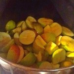 My kitchen is FULL of apples…so far we’ve had them au naturel, I’m drying some sloooooooowly in the oven and I’m boiling some up to make apple syrup. I predict crumble galore too. Any other ideas?