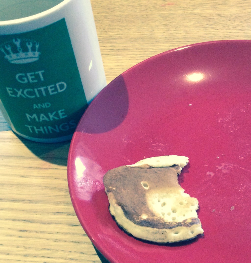 I am a bad mother at times. Well, we all are aren’t we? Aren’t we? Anyway, I stayed out far too late on Friday night and so to make up for being less than lively next morning I made Drop Scones from the wonderful Be-Ro book, my childhood baking bible introduced to me by my grandma. The recipe is here. Try it. Now. And while your little darlings are munching away you can give your maternal angel wings a quick polish. Or in my case a full valet service.