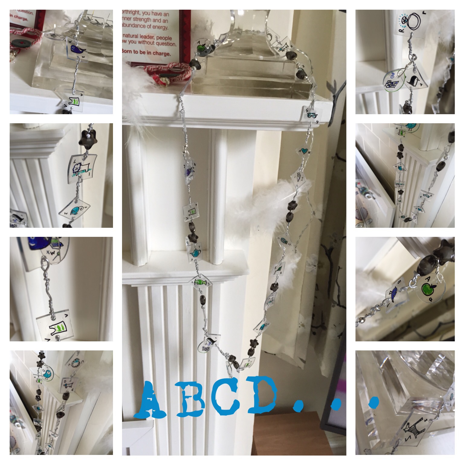 I made her a necklace with ABCD pictures so that when they are learning their letters and sounds, she might want to use it as a prop. Failing that, she could always hang it up somewhere and wonder at what kind of person spends their time making these things!